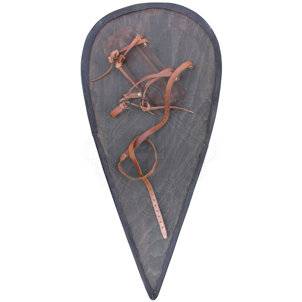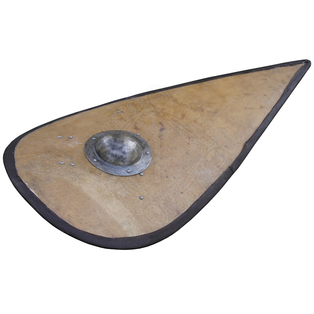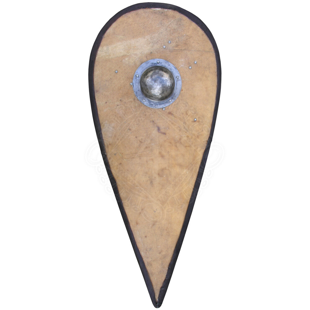 Dieser Langspitzschild wurde gefertigt nach zeitgemäßen Abbildungen von der Schlacht bei Hasting, in Gebrauch war er im 10. und 11. Jahrhundert. Die heute unter dem Namen Normannenschild, auch Mandel, Drachen-, Langspitz- oder Kiteschild (von kite „Drachen“), bekannte Schutzwaffe war im 11. und 12. Jahrhundert der dominierende Schildtyp in Europa. Weitere Produktinformationen ...