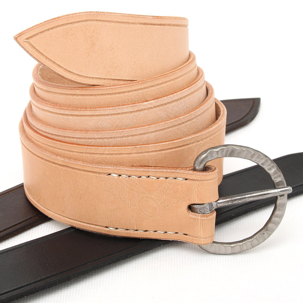 1xZur Herstellung dieses einfachen gotischen Gürtels Maurice wurde eine Vorlage aus Bremen verwendet. Der Gürtel ist eine erhaltene handwerkliche Arbeit aus der damaligen Zeit. Eine einfache handgeschmiedete Schnalle mit hochwertigem Leder verleiht dem Besitzer einen echten historischen Hauch. Das Rindsleder mit einer Stärke bis 4mm sorgt für hohe Beständigkeit und Festigkeit des Gürtels. Die Gürtelschnalle ist aus Eisen traditionell durch Handschmieden gefertigt. Am Gürtelriemen ist sie mittels eines gebleichten Leinzwirns von Hand angebracht. Die Breite des Gürtelsbeträgt 4cm. Weitere Produktinformationen ...