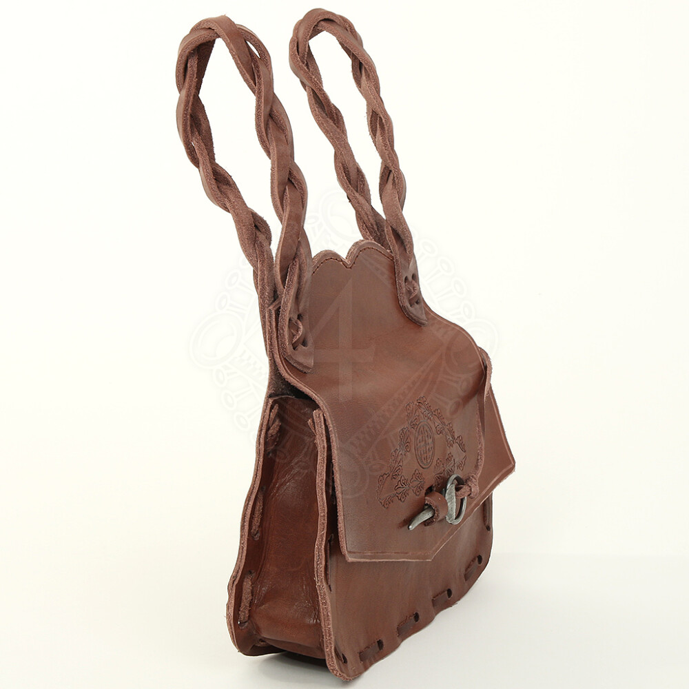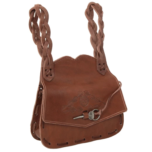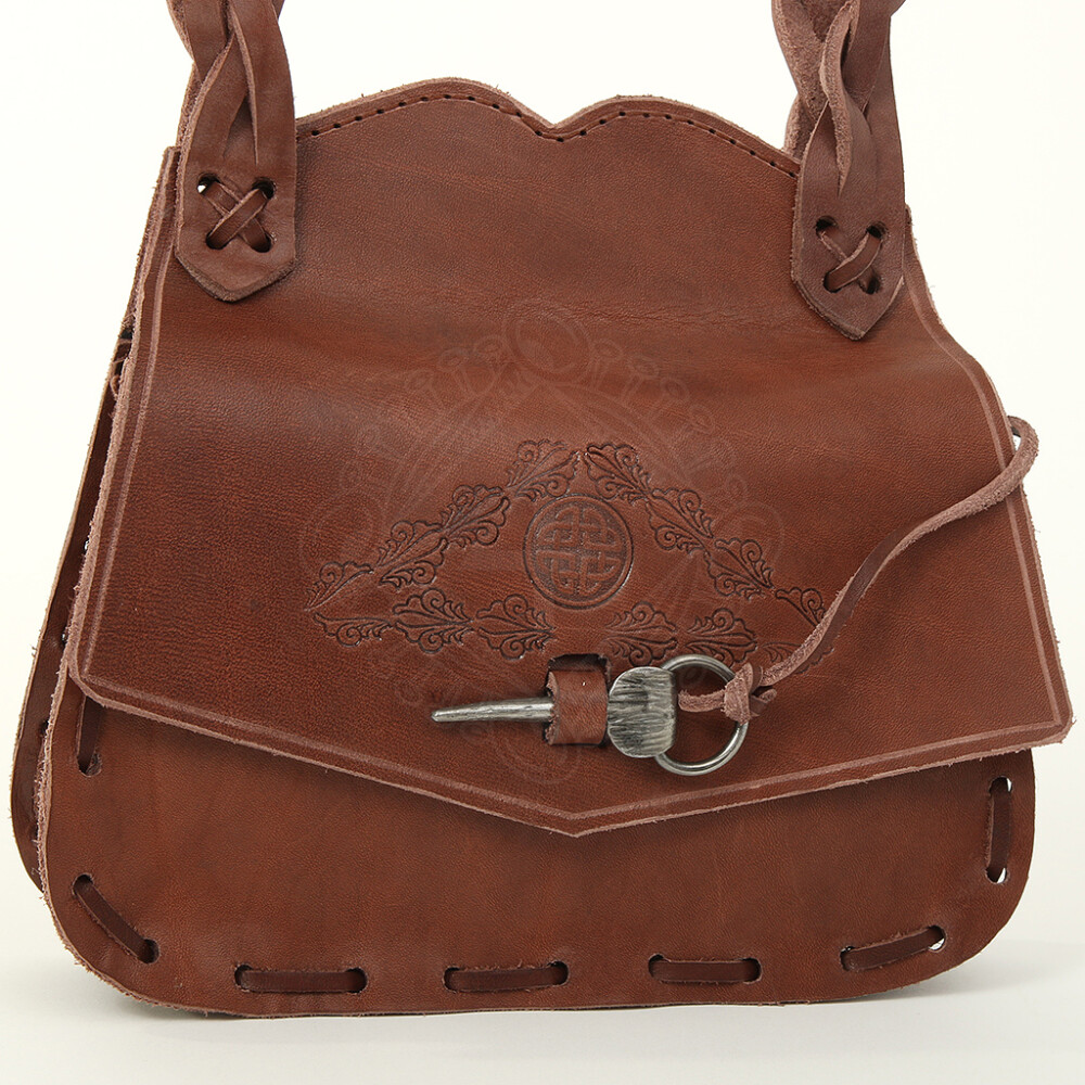 Die traditionelle Vorlage dieser Wikingertasche stammt aus der Zeit der Besiedlung der Orkney-Inseln, also ca. vom 10. Jahrhundert. Sie ist unter Living History Fans sehr beliebt. Sie ist aus Rindsglattleder mit einer Stärke bis 2,8mm hergestellt. Die Gürteltasche wird mittels einer handgeschmiedeten Verschlußnadel an der Klappe verschlossen. Das geprägte Motiv aus der Kelten-Wikinger-Mythologie verleiht dem Besitzer Lebenskraft. Die Gürteltasche Orkney wird am Gürtel mittels der geflochtenen Schleifen gehängt getragen, die mit ihrer Form an das verzwickte und schwere Leben der Wikinger erinnern. Weitere Produktinformationen ...
