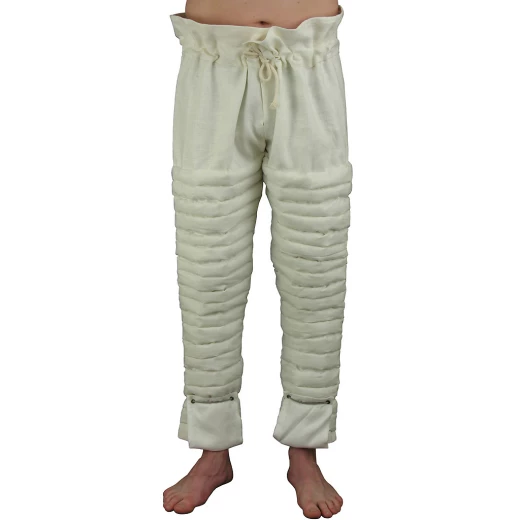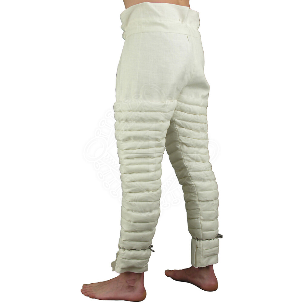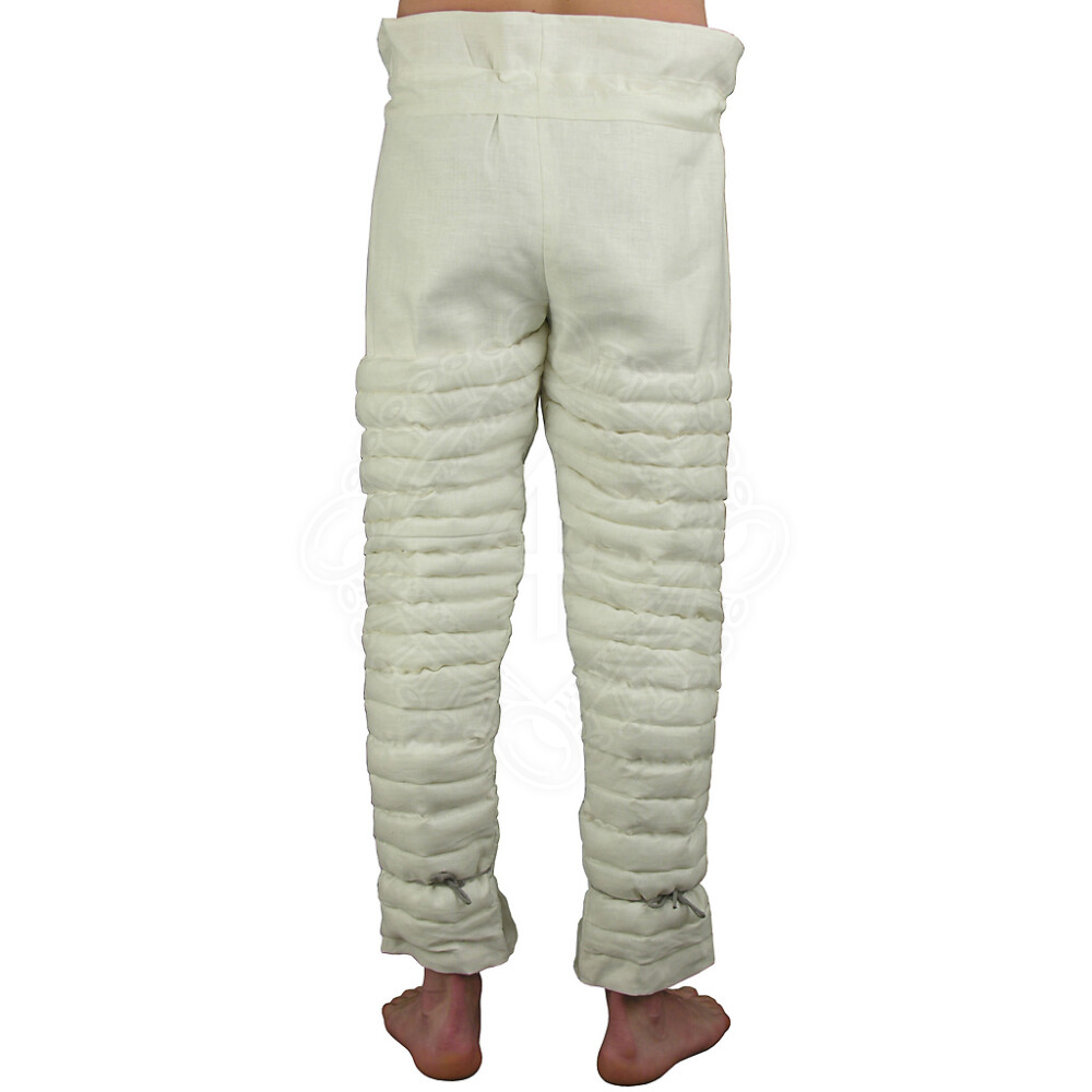 Die Gladiatorhose bindet man in der Taille mit dem Schnürchen. Die Hose ist unter den Knien gesteppt und gepolstert.