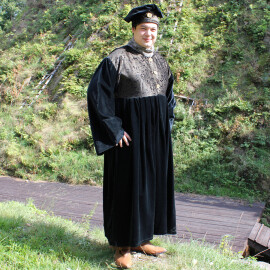 - Der lange Rock ist vom Samt abgenäht und längt bis zur Erde und hat Ärmel, die wie die mittelaterliche Hängeärmel herabhängen.