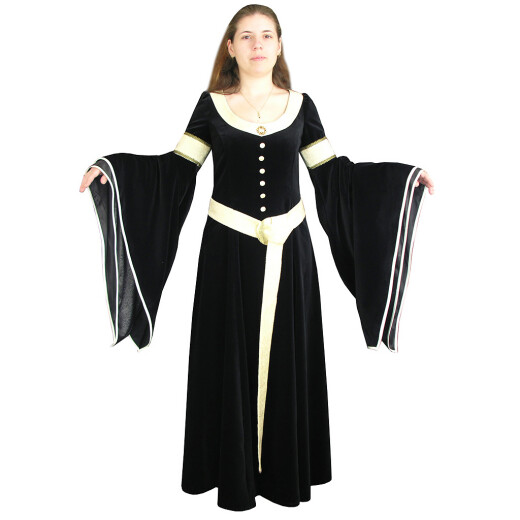 Das Kleid ist vom Samt abgenäht und längt bis zur Erde. Das Kleid hat einen Knopfverschluss und ein Leibchen mit langen doppelten Ärmeln, die in die Breite gehen. Weitere Produktinformationen ...