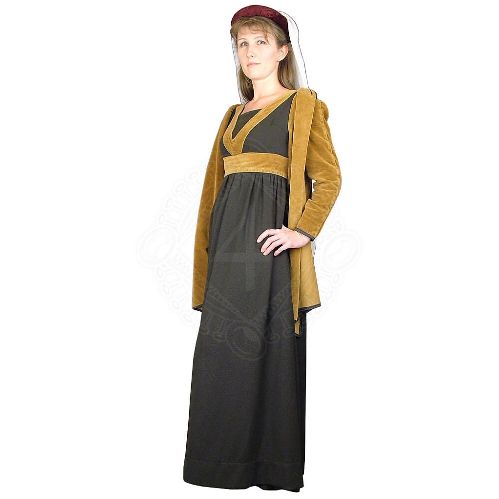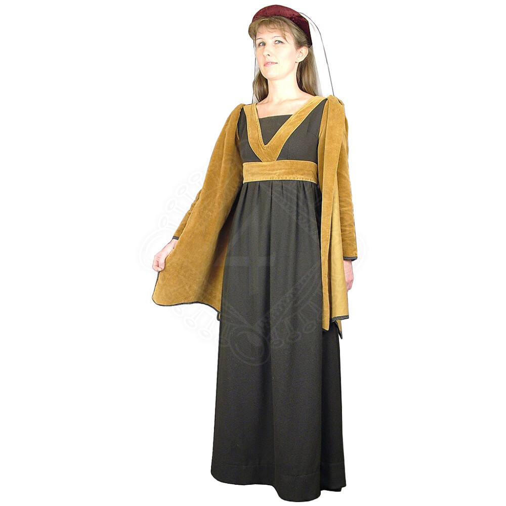 Das Robekleid im Stil der Spätgotik hat einen Corsage mit einer Dekolleté der V Form. Die Dekolleté ist mit einem Stoff bedeckt. Der Corsage hat Doppelärmel - die lange enge Unterärmel und die falsche Oberärmel, die wie die mittelalterliche Hängeärmel herabhängen. Der Rock längt bis zur Erde. Zum Kleid gehört auch ein Kranz mit einer Schleier. Weitere Produktinformationen ...