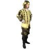 Dieses italienische Duvetinekostüm ist mit einer geflochtenen Borte mit goldener Metallfaser geziert. Die Hose besitzt falsche Aufschnitte aus Brokat. Der Kragen und die Manschetten sind mit luftiger Spitze verziert. Das Wams wird vorn mit Schmuckknöpfen zugeknöpft. Auf den Seiten der verlängerten Schöße befindet sich eine Scheinleiste mit Schmuckknöpfen. Zum Italienisches Renaissancekostüm wird ein Hut mit Feder mitgeliefert. Weitere Produktinformationen ...