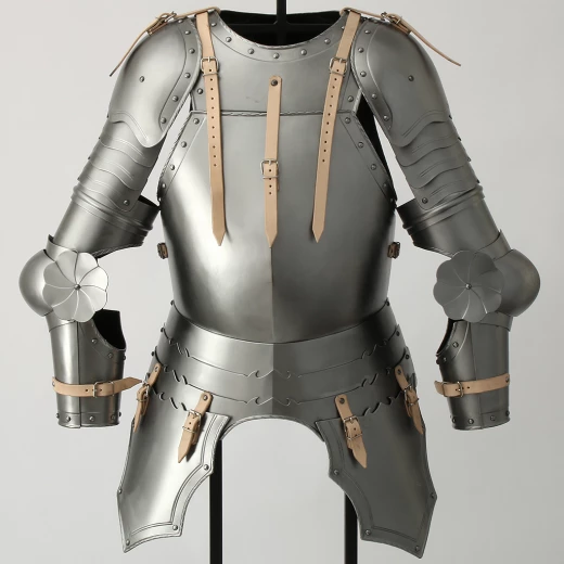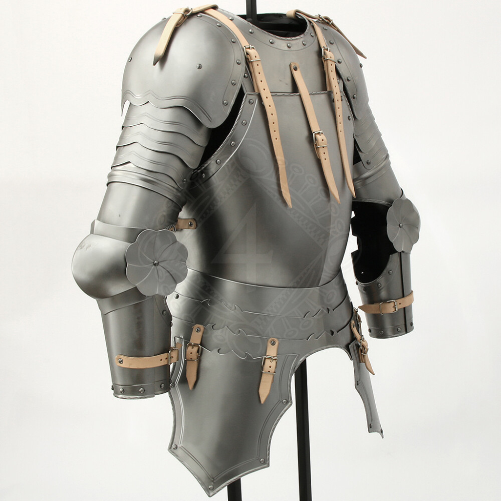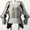 - Armzeug (Schulterpanzer, Oberarmröhren, Ellenbogenkacheln und geschlossene Unterarmschienen)