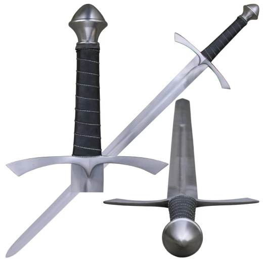 Die Schaukampfversion von diesem Schwert hat eine Schlagkante von 2-3mm und eine abgerundete Klingenspitze. Ein Schwert mit diesen Eigenschaften kann zum Schaukampf verwendet werden.