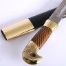 Haftungsausschluss: Obwohl diese Blankwaffe aus haltbaren Materialien besteht und das Ergebnis echter Handwerkskunst ist, bietet der indische Hersteller keinen Service oder Garantie für Schäden, die durch den Gebrauch entstehen. Aus diesem Grund wird diese Schaschka als reiner Dekorationsartikel ohne Garantie verkauft.