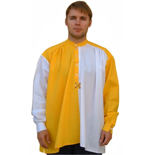 Dieses Herrenhemd ist aus Baumwolle in Mi-Parti-Optik genäht. Das gotische Hemd reicht bis zur Taille, hat lange Ärmel mit Manschetten und wird vorn geknöpft. Weitere Produktinformationen ...