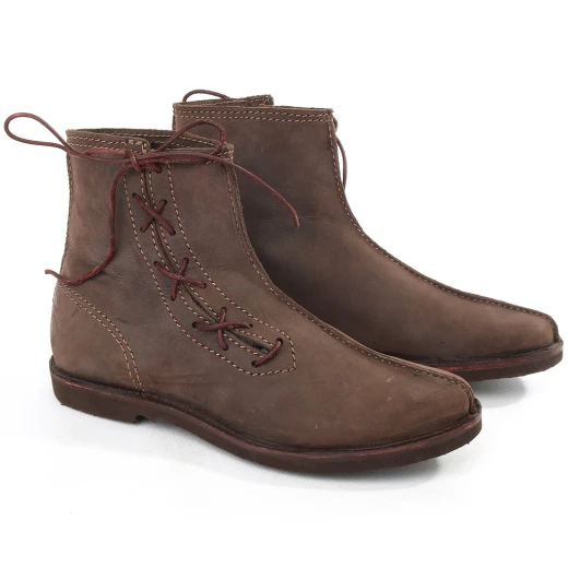 Die klassischen ledernen Wikinger - Knöchelschuhe sind angespitzt und an den Außenseiten haben einen Schnürchenverschluss. Die Schuhe sind ca. 15cm hoch. Weitere Produktinformationen ...