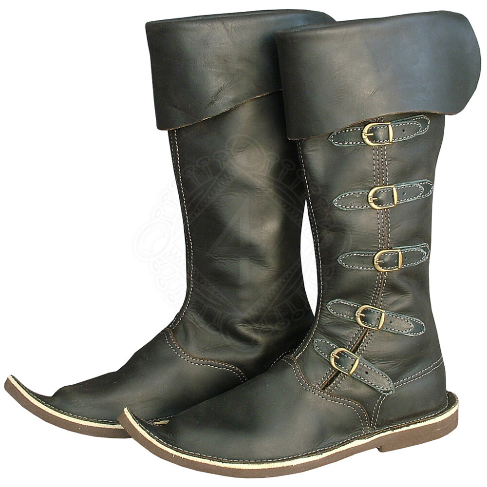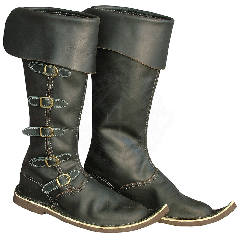 Bei diesem Modell Gotische Stiefel mit Seitenschnallenkönnen Sie die Gesamthöhe (gemessen vom Boden) entsprechend der Höhe des einzelnen Trägers festlegen. Es ist nicht empfehlenswert, eine Höhe zu wählen, die die Grenze von ca. 5cm unterhalb der Kniescheibe übereschreitet. Maximale Schuhhöhen belaufen sich in der Regel auf ca. 48cm.
