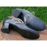 Die Schuhe sind mit Balsam mit Bienenwachsinhalt behandelt. Die Schuhe sind aus echtem Rindsleder gefertigt. Man kann sie mit verschiedenen Pflegemitteln behandeln. Der Balsam mach das Leder weich und imprägniert es. Überdies mach es das Leder dunkler. Wenn Sie über den Balsam nicht verfügen, können Sie auch das Öl fürs Leder oder eine gewöhnliche die Schuhcreme gebrauchen. Mit der Schuhcreme kann man die Lederfarbe leicht tönen und kleinere Mängel decken (z.B. abgestoßene Spitzen).