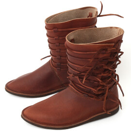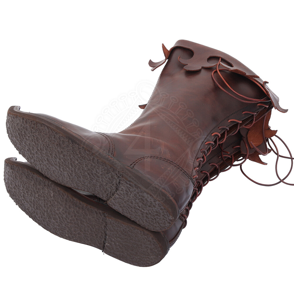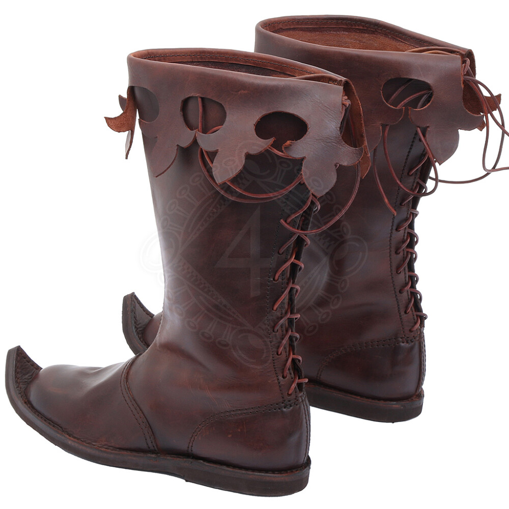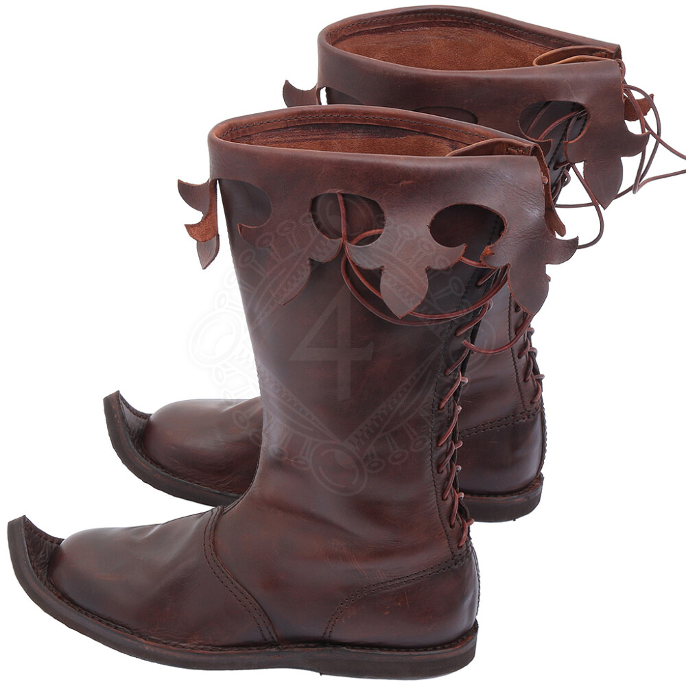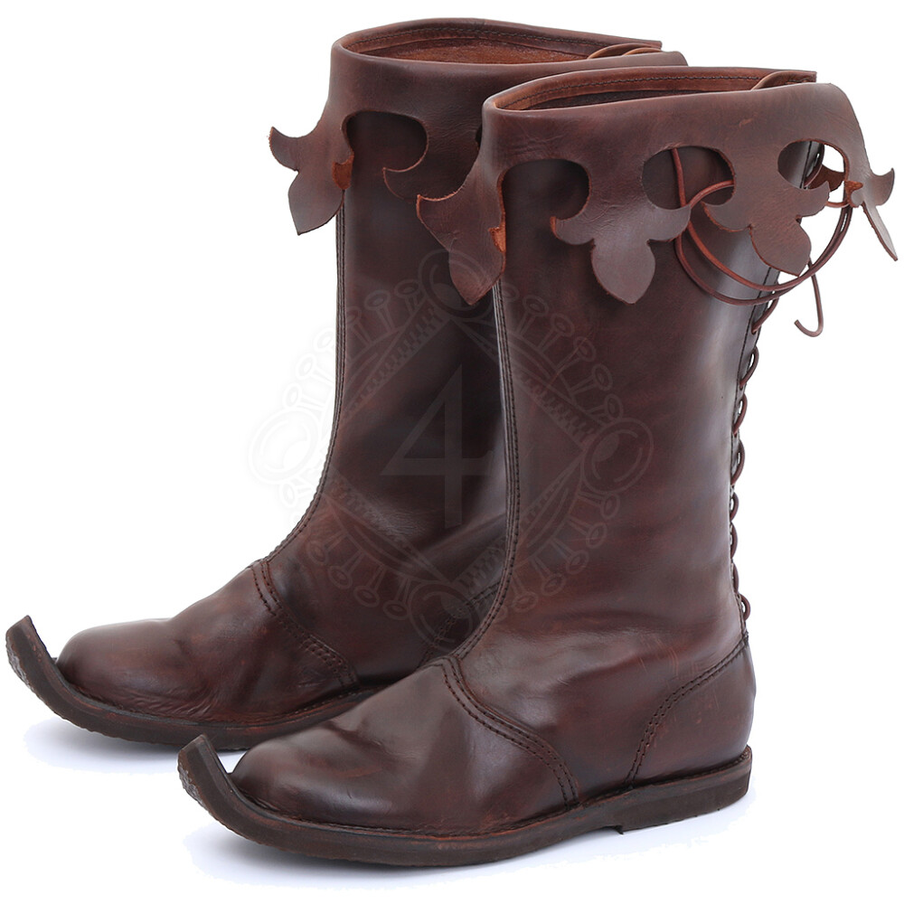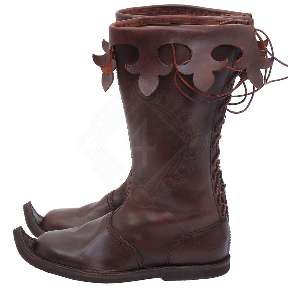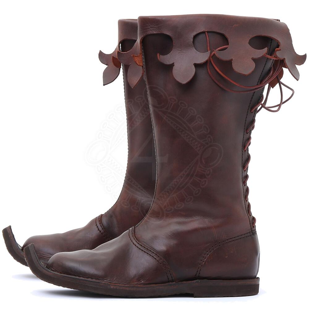 Die Stiefel im Stil der Gotik sind angespitzt und haben eine Faltungmanschette, die mit den Zierschlitzen verziert ist. Weitere Produktinformationen ...