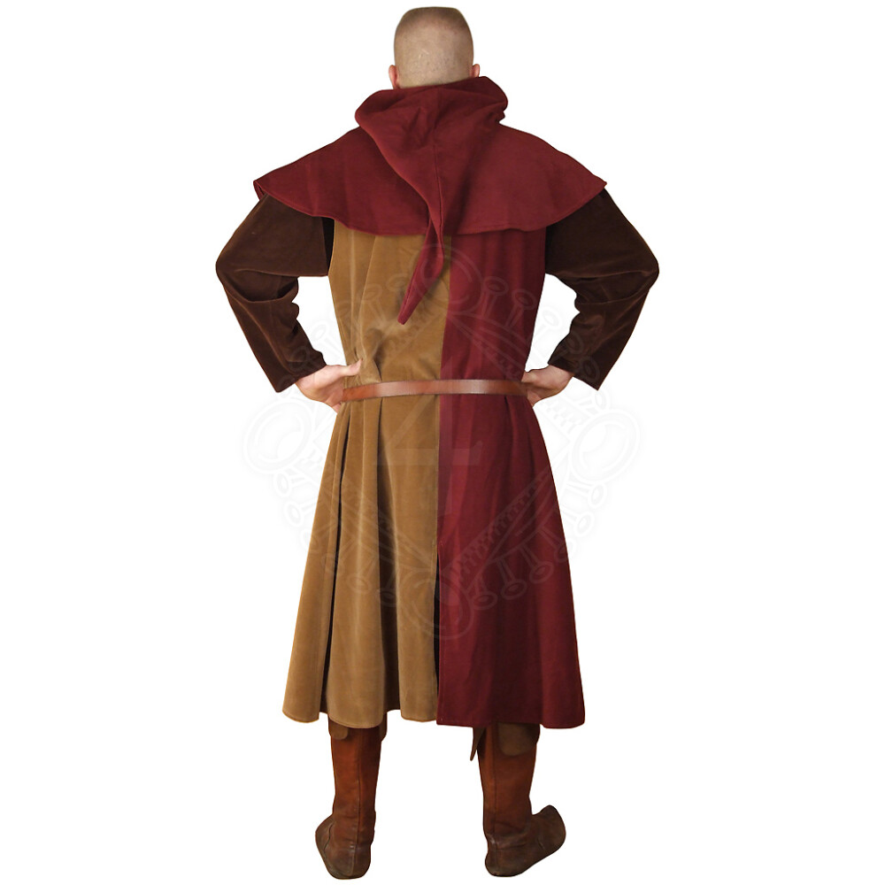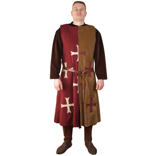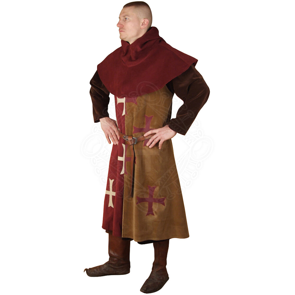 Über den langen Unterrock aus Samt mit langen Ärmeln wird ein Waffenrock aus Samt getragen. Der Waffenrock ist ärmellos und ist mit Kreuzmotiven verziert. Am vorderen und hinteren Unterrand des Waffenrocks befinden sich Schlitze, die bis zum Schritt reichen. Zum Waffenrock James wird eine Kappe mit Kapuze mitgeliefert. Weitere Produktinformationen ...