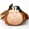 Der weiche geraffte Teil (Beutel) kann in dunkelbraun, hellbraun oder schwarz gefertigt werden.