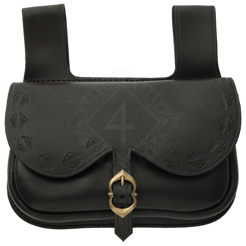 Als Vorlage dieser Gürteltasche diente ein Muster aus der Zeit der Spätgotik. Beliebt war sie insbesondere unter französischen Kaufleuten und Markthändlern, die zur Ausübung ihrer Geschäfte viele erforderliche Sachen bei sich tragen mussten. Die Klappe ist mit einem Ornament – Buchstabe B – am gesamten Umfang dezent verziert. Die Gürteltasche mit Ornamenten wird mittels einer gegossenen Schnalle verschlossen. Weitere Produktinformationen ...