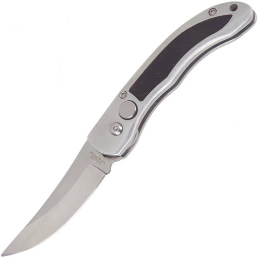 Das Highlight dieses Messers ist sein automatischer Öffnungsmechanismus. Ein Druck auf den Knopf am Griff genügt, und die Klinge springt blitzschnell in die Arbeitsposition. Derselbe Knopf dient auch zum Entriegeln der Klinge beim Schließen. Die Klinge selbst ist im Trailing Point-Stil gehalten (eine leicht nach oben gezogene Spitze, die an orientalische Messer erinnert). Diese Form verleiht dem Messer nicht nur eine dynamische Optik, sondern auch exzellente Schneideigenschaften, besonders bei ziehenden Schnitten.