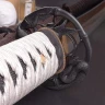 Die Klinge des Schwertes ist aus rostfreiem Stahl 420 und gehärtet. Die Scheide ist aus Metall.