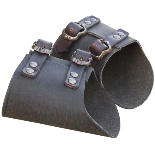 Die Manschetten-Armschienen sind ein integrales Hilfsmittel (zum Schutz des Handgelenkes) für aktive Fechter. Ihre Vorlage stammt aus der Zeit der Frühgotik. Sie dienen überwiegend zum Festziehen von langen Ärmeln bei Hemden und weiteren Kleidern. Die Armschienen sind aus gefärbtem Rindsleder mit einer Stärke von 1,8-2mm hergestellt. Die Länge der Armschienen beträgt 10,5cm.  Weitere Produktinformationen ...
