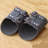 Die Manschetten-Armschiene wird mit zwei Schnallen verschlossen, mit denen sich die Armschiene unterschiedlich festziehen lassen. Außer der dargestellten farblichen Ausführung sind die Lederarmschienen auch in weiteren Farben erhältlich: siehe Farbenwahl.