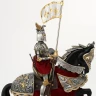 Ein Französisch Ritter - König Richard Löwenherz auf Pferd, befestigt auf einer hölzernen Plattform. Der Ritter trägt eine Parade Rüstung, einen Topfhelm mit Helmzier, einen Brustpanzer mit Schulterstücken, Arm- und Beinzeug. Das Ritterkostüm und die Pferdedecke bestehen aus rotem Samt. Der Ritter hält einen Rundschild und Lanze mit Fahne. And er teile hat er ein Schwert aufgehängt. Das Pferd ist auch mit einer Paraderüstung ausgestattet. Alle Rüstungsteile sind aufwendig mit Reliefen verziert. Die Stickereien auf der Pferdedecke zeigen je 3 heraldischen Löwen. Weitere Produktinformationen ...