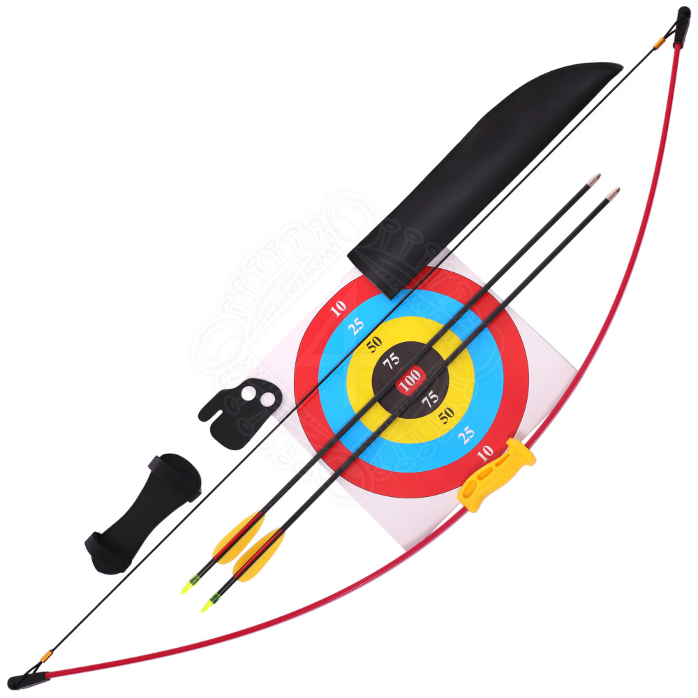 Jugend-Sportbogen für Kunder. Der Kinderbogen ist aus Fiberglas, komplett mit 2 Pfeilen, 1 Pfeilköcher und 1 Armschutz. Weitere Produktinformationen ...