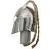 Als erster Besitzer dieses guten Stücks kann ich mit Fug und Recht behaupten, dass dieser Helm hervorragend ist. Er sitzt prima, ist sauber gearbeitet und hält, was er verspricht. Da er auf Maß gefertigt ist, schränkt das Nasal die Sicht in keinster Weise ein. Man muss sich eher bemühen, das Ding überhaupt wahrzunehmen. Er ist offen genug und erlaubt so komplett freies atmen, schützt aber den Kopf trotzdem hervorragend. Einzig gegen Stiche oder Angriffe auf die Augen bietet dieser Helm wenig Schutz. Die Geschübe im Nacken erlauben einen senkrechten Blick nach oben. Die Bewegung wird also überhaupt nicht eingeschränkt.
