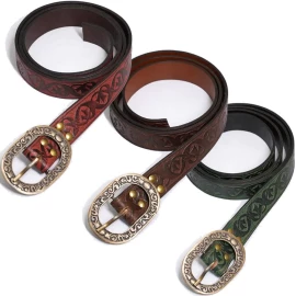 Eine Variante des schlichten spätgotischen Gürtels mit zeitlosem Design ist aus bis zu 4 mm dickem Rindsleder gefertigt. Die einfache gegossene Schnalle ist nach historischen Unterlagen hergestellt. Als Material zur Herstellung dieses Typs der Schnalle wurde eine Verbundstofflegierung verwendet. Die Schnalle ist am Gürtel mittels eines Leinenzwirns genäht. Der Rand des Gürtels ist mit einer eingravierten Rille verziert. Die Breite des Gürtels beträgt 5cm. Weitere Produktinformationen ...
