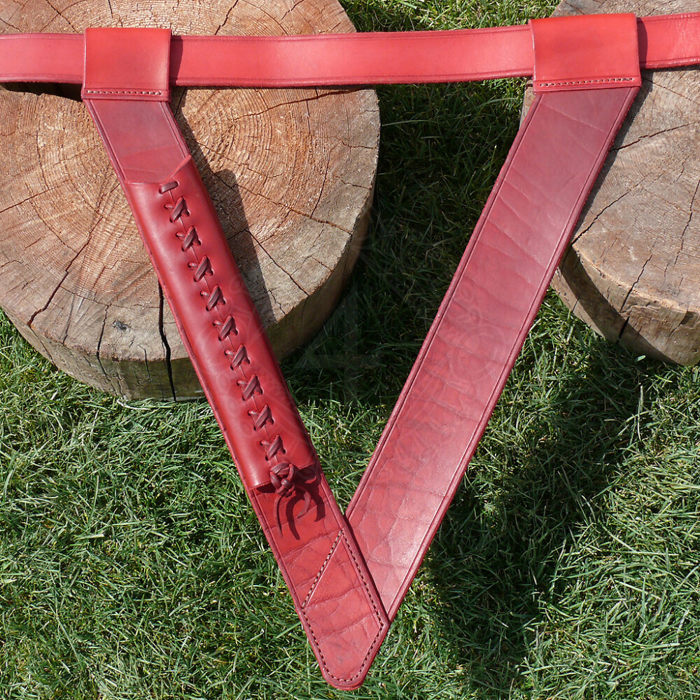 Das einfache Gehänge ist aus Rindsglattleder mit einer Stärke bis 3,5mm hergestellt. Dieser Typ des Gehänges ist durch seine Verteilung für schwerere Waffen geeignet. Der Zug zum Aufhängen ist aus einem Stück gefertigt, und in der Mitte mit Riemen verbunden und anschließend zur Traggabel des gesamten Gehänges befestigt. Die Höchstbreite der Schleife für den Gürtel beträgt 4cm. Auf Wunsch können auch andere Schleifenbreiten hergestellt werden. Weitere Produktinformationen ...