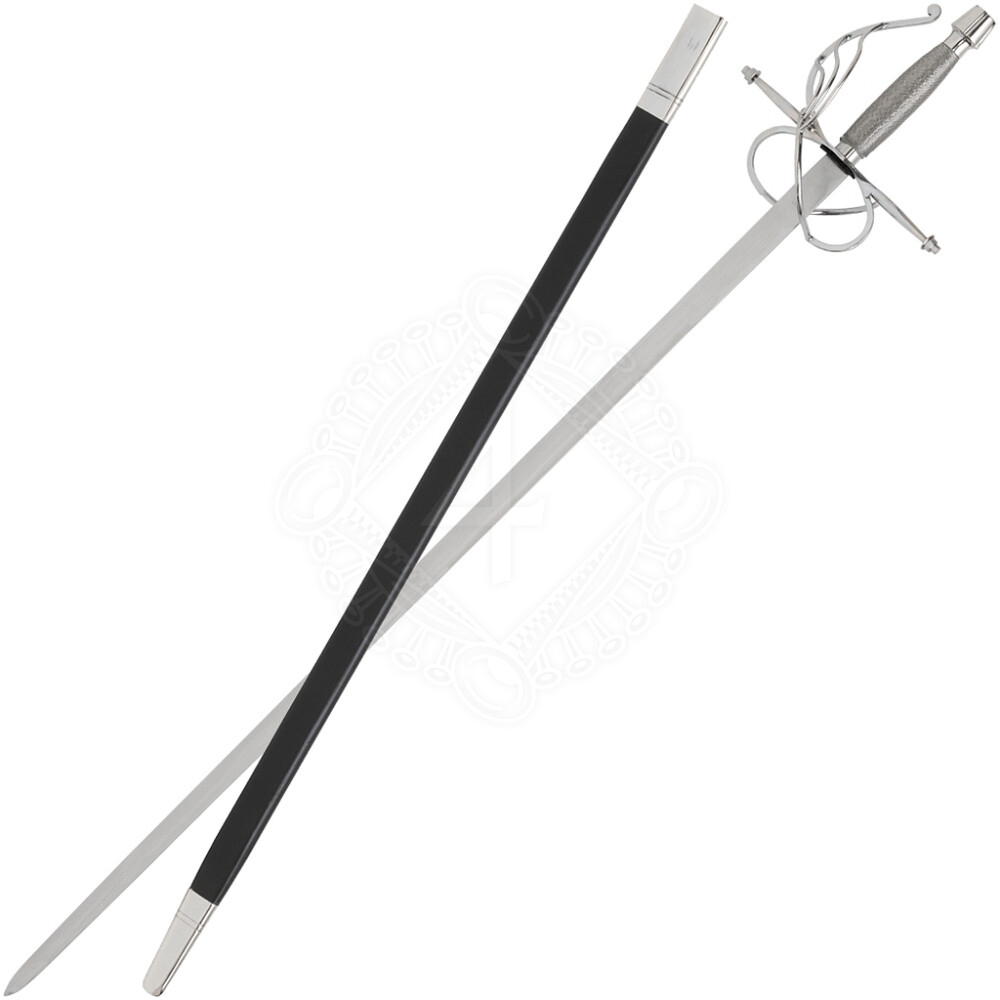Klinge handgeschmiedet aus Kohlenstoffreichem Hartstahl. Der Griff ist mit Draht umwickelt, die Parierstange und der Endknauf sind aus Stahl. Die hölzerne Scheide ist mit Leder bezogen, ihr Mund- und Ortblech sind aus Metall. Weitere Produktinformationen ...