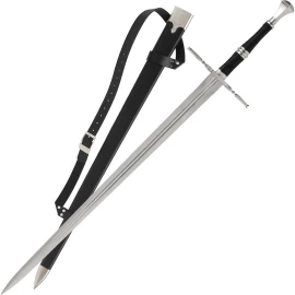 Jeder Hexer, Geralt eingeschlossen, ist dafür bekannt, zwei Schwerter bei sich zu tragen. Das erste, ein Stahlschwert, ist für den Kampf gegen menschliche Gegner und gewöhnliche Tiere bestimmt. Das zweite, das Silberschwert, ist speziell für den Kampf gegen Monster, Geister und magische Kreaturen konzipiert und verzaubert, für die Silber tödlich ist. Diese Replik stellt ebenjenes legendäre Silberschwert dar, unerlässlich für jeden, der es wagt, sich den dunklen Mächten entgegenzustellen.