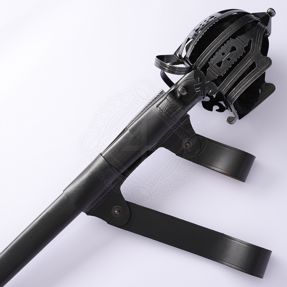 Diese Versieon von dem berühmten Korbschwert ist scharf geschliffen und wird mit passender Lederscheide mit Gürtelknopf und verstellbarem Lederfrosch geliefert.
