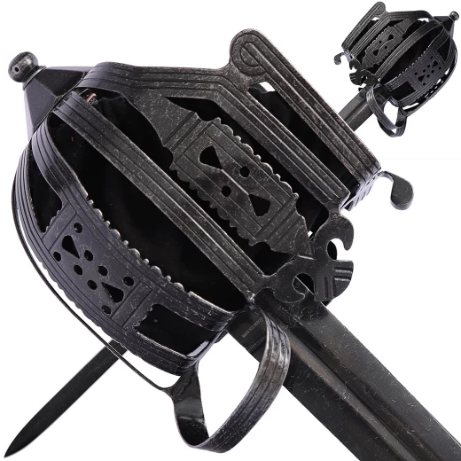 Das Korbschwert (auch Breitschwert genannt) wurde im 16. Jahrhundert immer populärer und sein grundlegendes Design wird immer noch von einer Vielzahl von Parade-Schwertern der Streitkräfte in der ganzen Welt verwendet. Diese besondere Form mit Stich- und Hiebklinge wurde während des Englischen Bürgerkriegs eingesetzt und fand im Laufe des nächsten Jahrhunderts viele Variationen je nach regionalem Stil, insbesondere in ganz Nordengland und Schottland. Weitere Produktinformationen ...