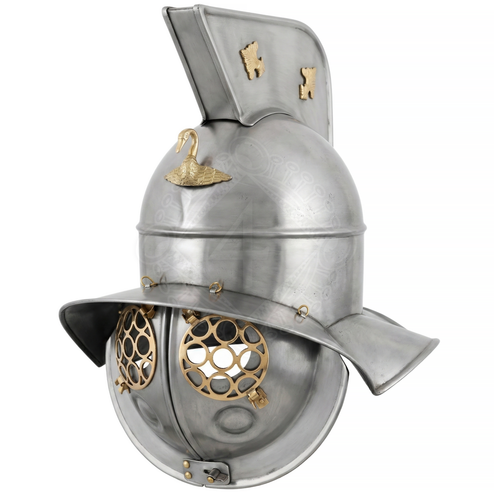 Dieser Helmtyp entwickelte sich vermutlich aus dem Phrygischen Helm, und verbreitete sich im antiken Griechenland. In der hier angebotenen Form bekannt wurde er aber in den römischen Arenen als Helm des Gladiator-Typus des Thraex. Weitere Produktinformationen ...
