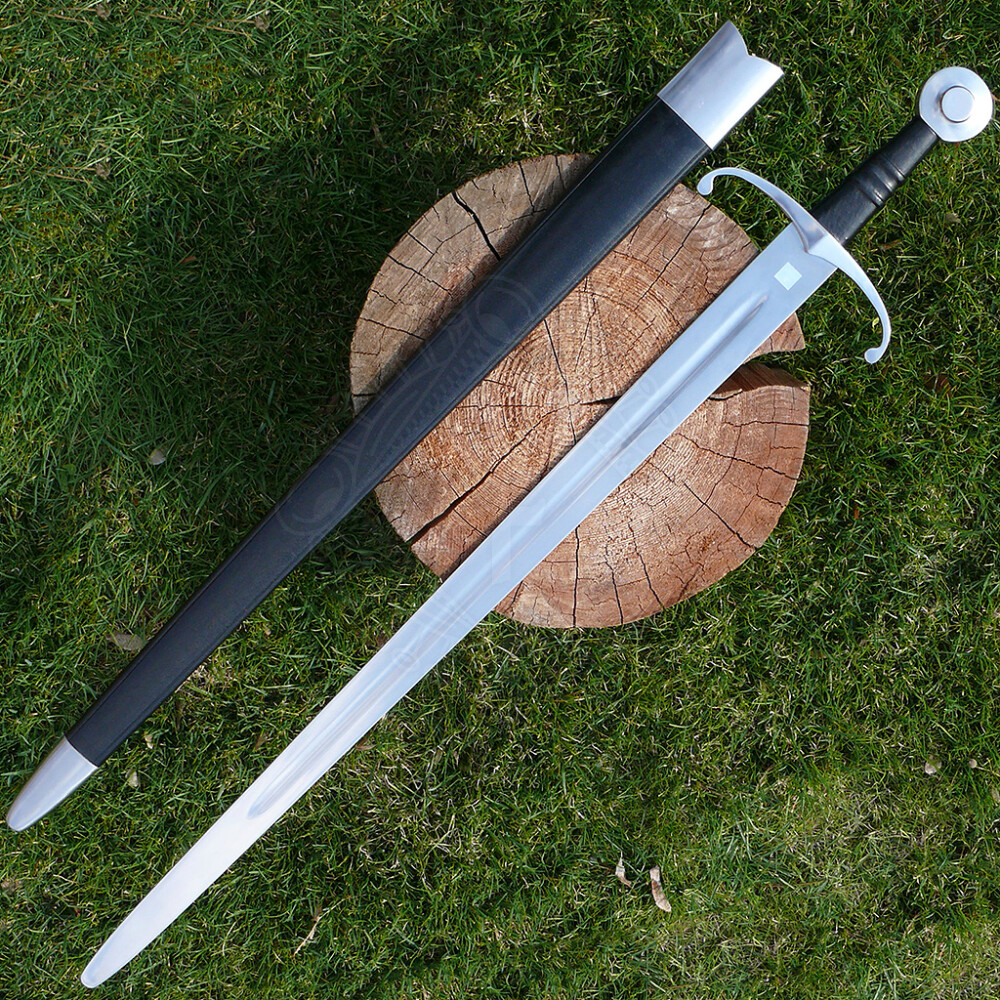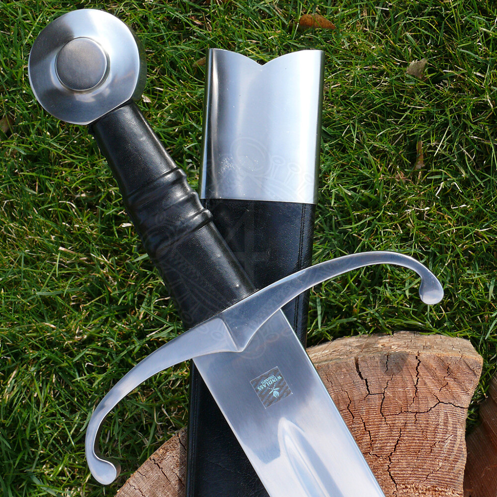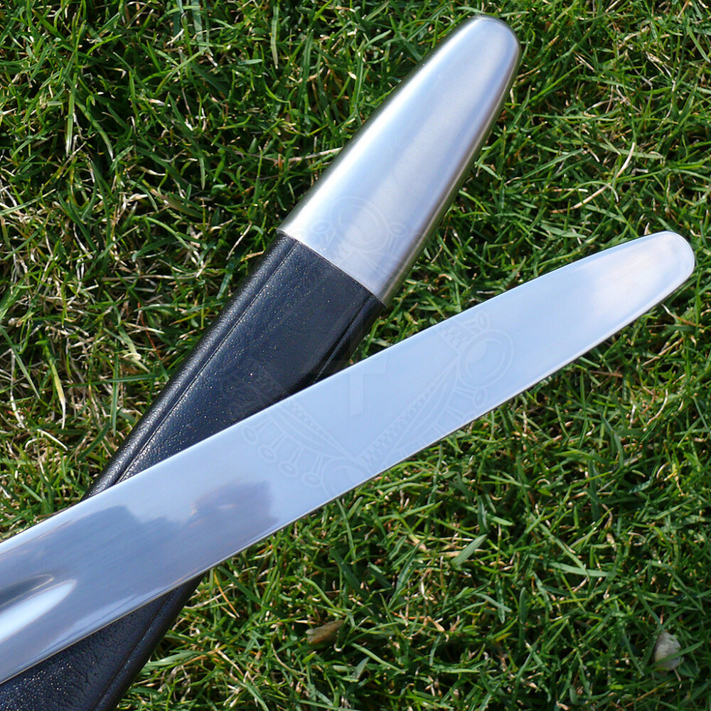Aus Sicherheitsgründen ist die Klingenspitze abgerundet. Die Lieferung beinhaltet eine beschlagene Lederschiede. Der Schaukampfschwert entspricht den Sicherheitsregeln für öffentliche Schaukämfe. Weitere Produktinformationen ...