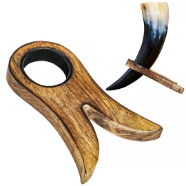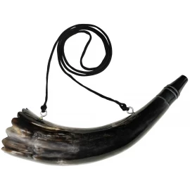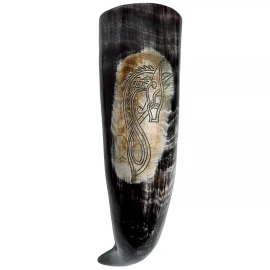 Dieses Trinkhorn ist mit einem Messingrand eingefasst, in den ein Wikingerknoten-Muster eingeprägt ist. Die dekorative Hornspitze in der Form eines nordischen Drachenkopfes aus Messing ergänzt das elegante Aussehen. Vorsicht nur mit der Hand spülen - nie im Geschirrspüler! Ein verstellbarer Ledergürtelholster ist im Lieferumfang enthalten. Weitere Produktinformationen ...