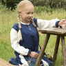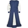 Das locker geschnittene Kleid ist aus festem Baumwollstoff (Canvas) gefertigt und wird mit einem Stoffgürtel geliefert. Farblich abgesetzte Details machen aus diesem Kleid etwas Besonderes. Der geschlitzte Ausschnitt wird offen getragen oder mit einer Fibel verschlossen. Vorder- und Rückteil bestehen aus rechteckigen Stoffbahnen, mittig und seitlich sind Geren (Keile) eingesetzt, die dem Saum genügend Weite geben. Unter dem Arm ist ein Zwickel (rechteckiges Stoffstück) eingesetzt. Der feste Canvas Stoff (Segeltuch) macht das Kleid robust und schwer und ist daher geeignet für das Frühjahr und den Herbst. Der Schnitt des Kleides orientiert sich an archäologischen Funden, die auf das 9. und 10Jh. datiert werden. Typisch für diese Zeit sind lange Kleider mit Schnitten die überwiegend aus Rechtecken und Dreiecken (Geren) zusammengesetzte wurden, um so möglichst wenig Stoff zu verbrauchen. Weitere Produktinformationen ...