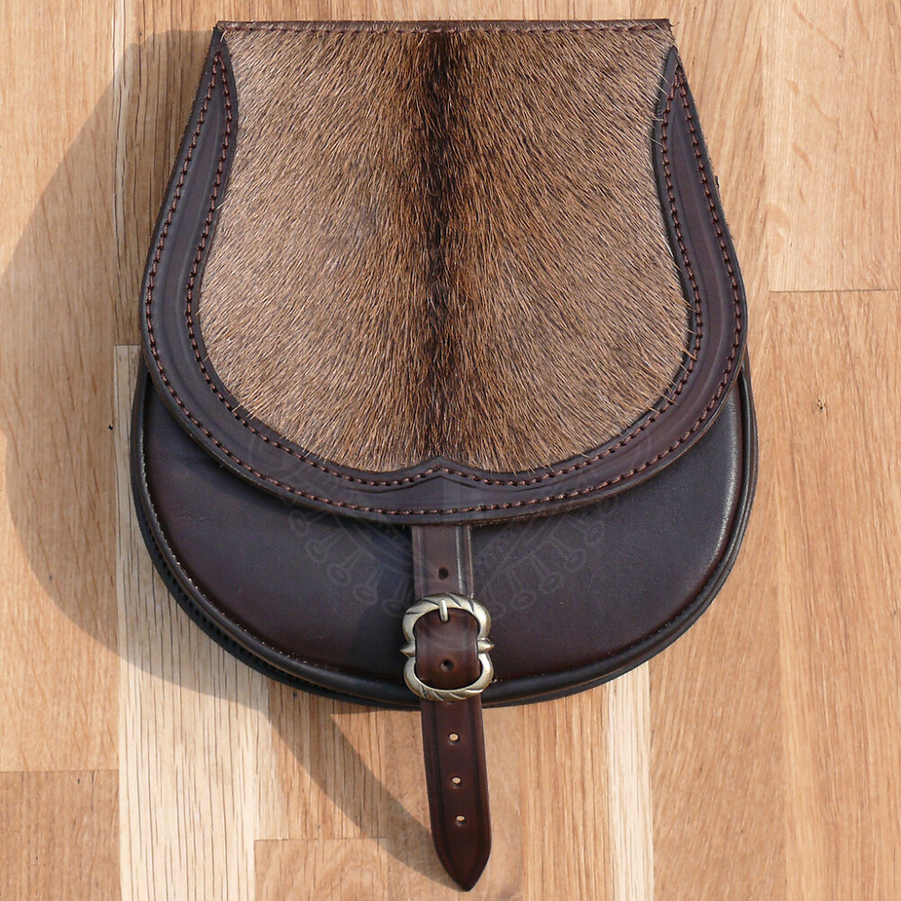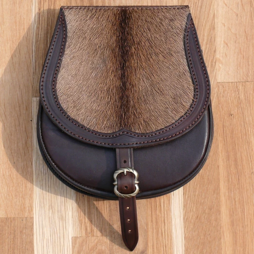 Die Vorlage der einfache gotischen Gürteltasche Jäger stammt von der Wende vom 14. zum 15. Jahrhundert. Die Gürteltasche ist aus Rindsglattleder mit einer Stärke von 2,5mm hergestellt. Ihr Muster geht von Gürteltaschen adeliger Jäger aus. Die Klappe ist mit Hirschfell verziert. Viele Jäger ließen dieses einzigartige Fell als Jagdtrophäe eben in die Klappe der Gürteltasche einsetzen. Weitere Produktinformationen ...