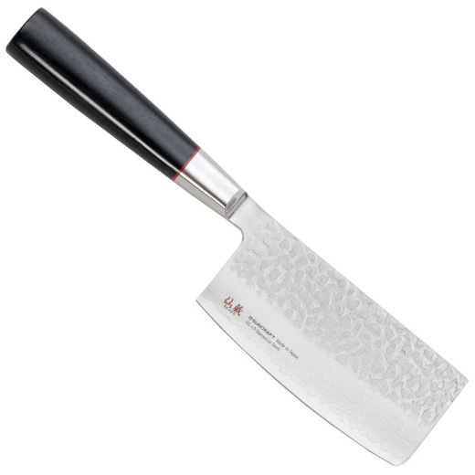 Ein japanisches Kochmesser nach traditioneller Art und Weise gefertigt. Die Klinge besteht aus 33 Lagen rostfreiem Damaststahl. Die Kernlage ist aus VG10 Stahl mit einer Rockwellhärte von 60-61°. Auf beiden Seiten wird sie geschützt von einer Lage Nickel und Silber. Zusätzlich sind je 15 Lagen Damaststahl aufgeschmiedet. Die so aufgebaute Klinge bietet eine höchstmögliche Schnitthaltigkeit bei gleichzeitig größtmöglicher Flexibilität. Die perfekte Hochglanzpolitur, sowie ein Griffstück aus schwarzem Pakkaholz, welches durch seine Kastanienform ergonomisch in der Hand liegt, runden dieses Meisterstück optimal ab. Die Oberflächenstruktur als Hommage an die traditionellen Schmiedetechniken wird maschinell eingepresst. Weitere Produktinformationen ...