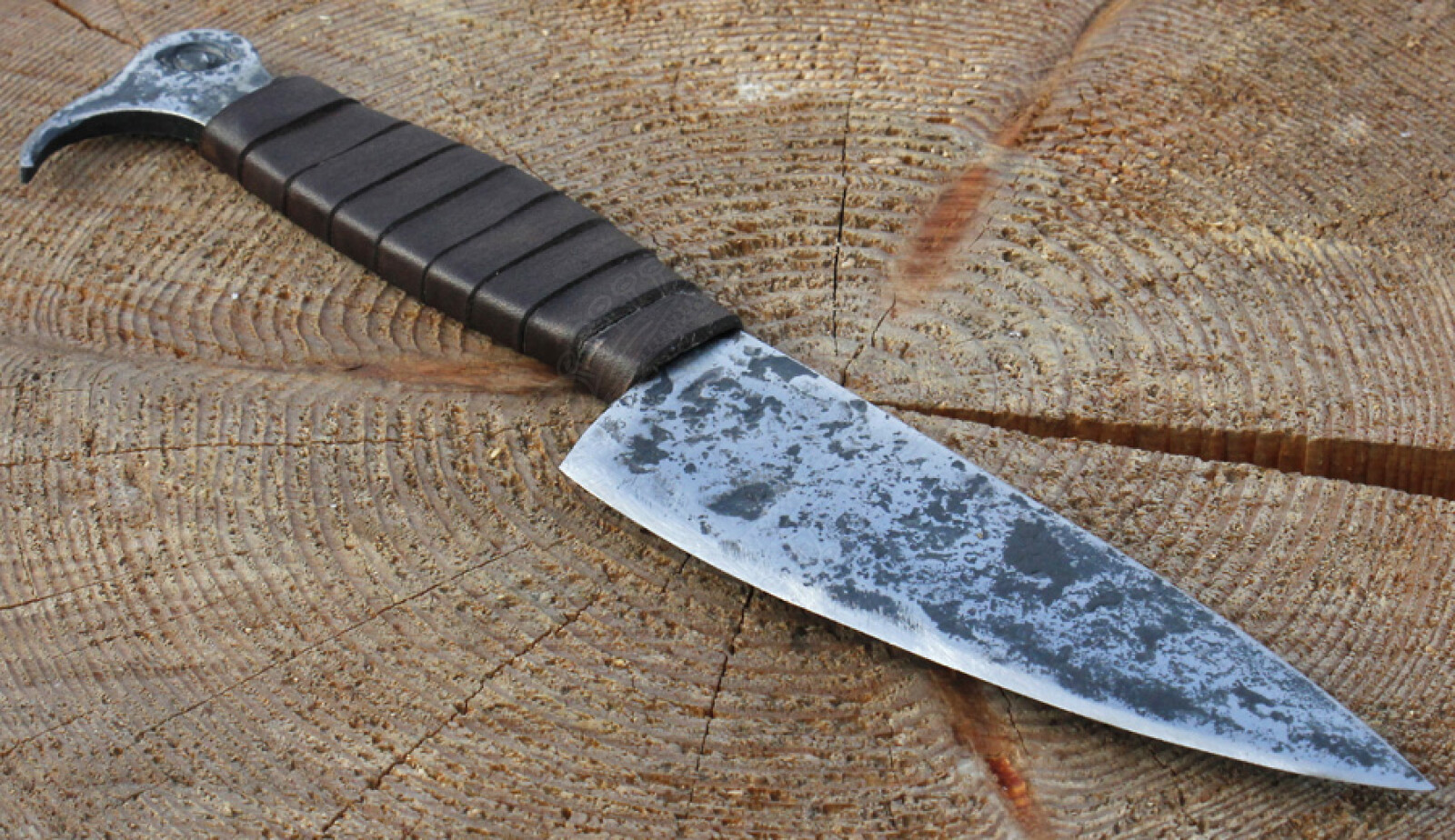 Da die Klinge aus Kohlenstoffstahl gefertigt ist, ist sie anfällig für Rost, genau wie die historischen Originale. Um ihr Aussehen und ihre Funktion zu erhalten, ist es entscheidend, sie trocken zu halten. Wische die Klinge nach jedem Gebrauch (selbst nach bloßer Berührung) sorgfältig trocken. Konserviere sie regelmäßig mit Öl (z. B. Mineralöl, Waffenöl oder Paraffinöl). Behandle den Ledergriff mit Lederpflegemitteln, damit er nicht austrocknet und rissig wird. Lasse das Messer niemals in einer feuchten Umgebung liegen und reinige es nicht in der Spülmaschine.