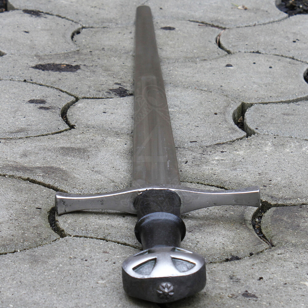 Dieser Schwerttyp wurde in Europa vom 13. bis zum 14. Jahrhundert verwendet. Alle technischen Angaben sind als ungefähr zu verstehen. Die Klinge ist hergestellt aus gehärtetem und getempertem kohlenstoffhaltigem Federstahl DIN 1.7103, der nicht rostfrei ist. Parierstange und Knauf sind aus Stahl. Die Klingenangel ist mit Holz umlegt und mit Leder umgewickelt.