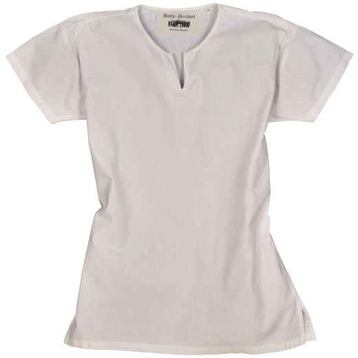 Vielseitig einsetzbare Tunika aus leichtem Baumwollstoff. Der Rundhalsausschnitt ist in der vorderen Mitte mit einem Schlitz versehen. Der Schlitz wird je nach Belieben mit einer Fibel geschlossen oder einfach offen getragen. Schlitze an den Seitennähten erhöhen den Tragekomfort. Tragbar als Ober- und Untergewand. Im Sommer ist die Tunika ein luftiges Obergewand und im Winter schützt sie als Leibhemd die Oberkleidung vor Schweiß. Weitere Produktinformationen ...