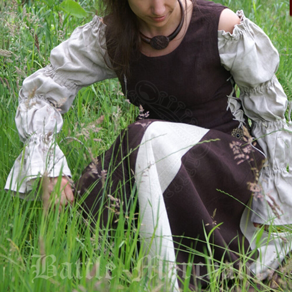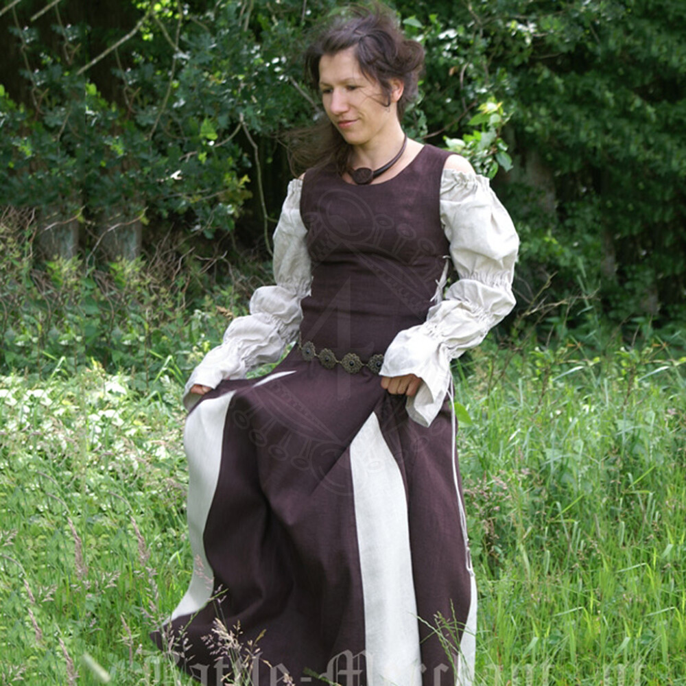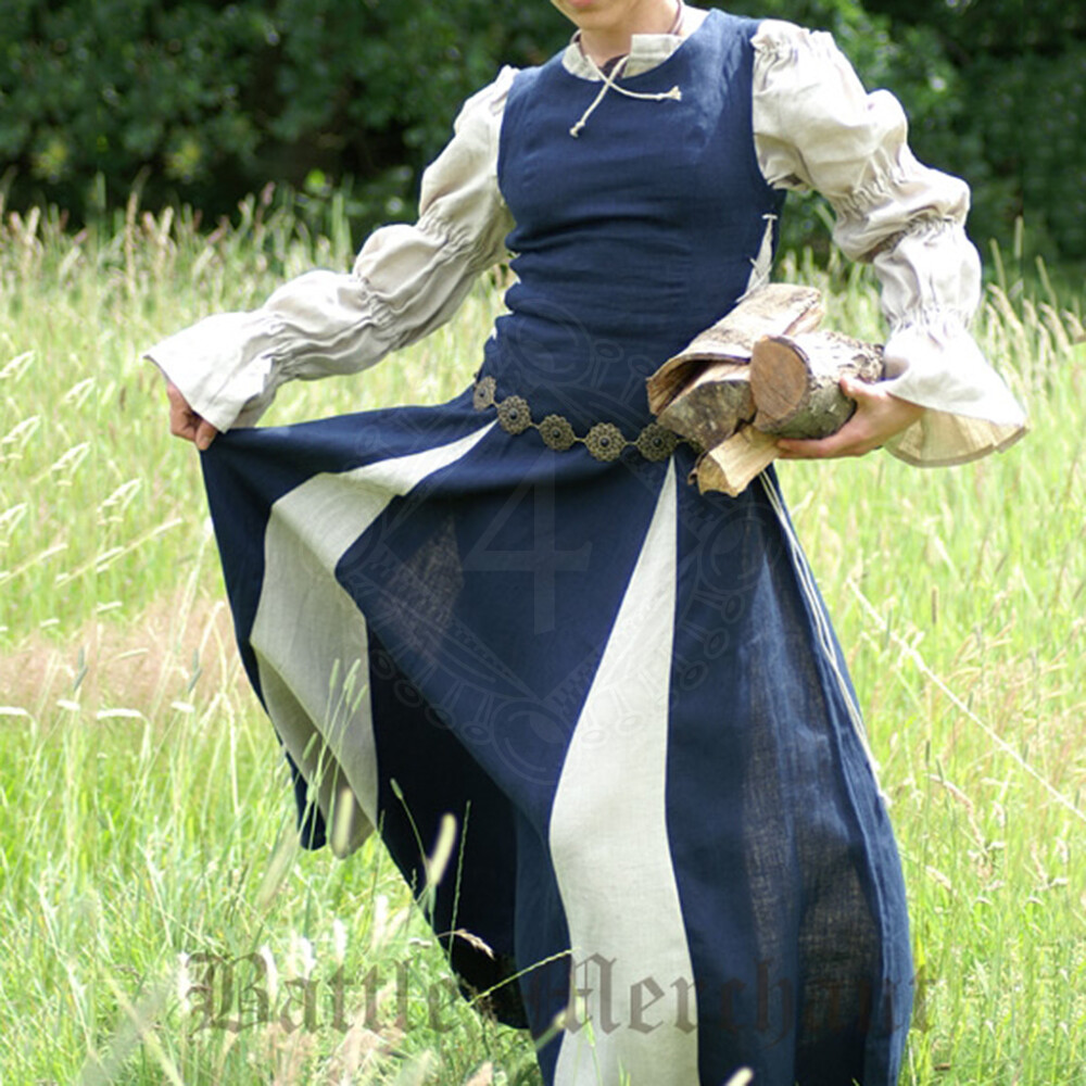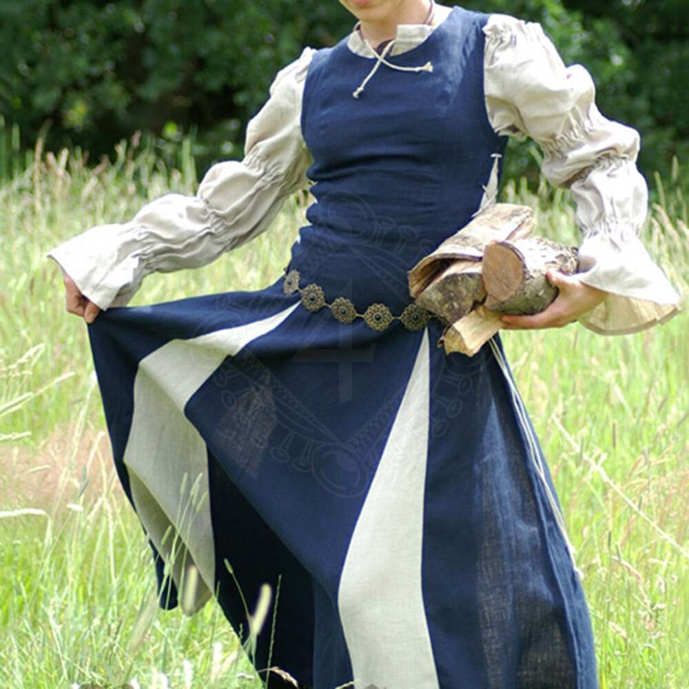 Wunderschönes Mittelalterkleid in blau oder braun mit naturfarbenen Einsätzen. Ein wahrer Blickfang ist dieses Kleid mit der beidseitigen Schnürung. Dadurch passt sich dieses Kleid nicht nur perfekt an den weiblichen Körper an, sondern fällt auch leicht bzw. schwungvoll und betont die ausgestellte Form des Kleides. Auf der Vorder- und Rückseite befinden sich jeweils zwei naturfarbene Einsätze. Ideal für alle Frauen, die grobe Stoffstrukturen bevorzugen, es aber dennoch weich und angenehm auf der Haut haben wollen. Ein Hoch auf die Flachsfaser. Zu diesem Kleid empfehlen wir die Mittelalterliche Miederbluse aus Leinen. Weitere Produktinformationen ...