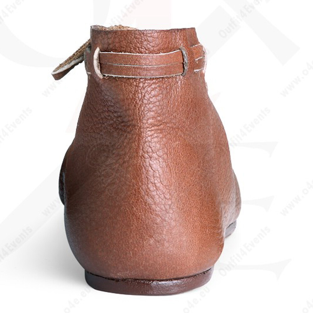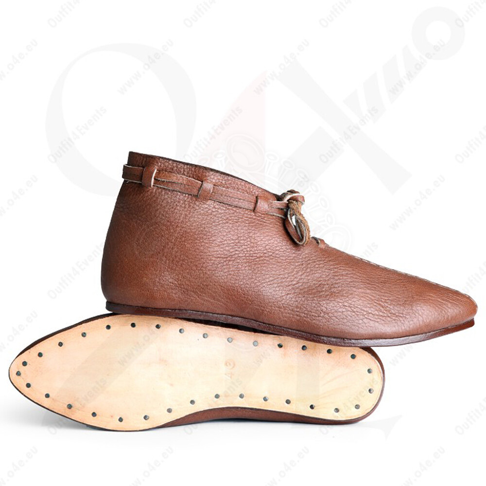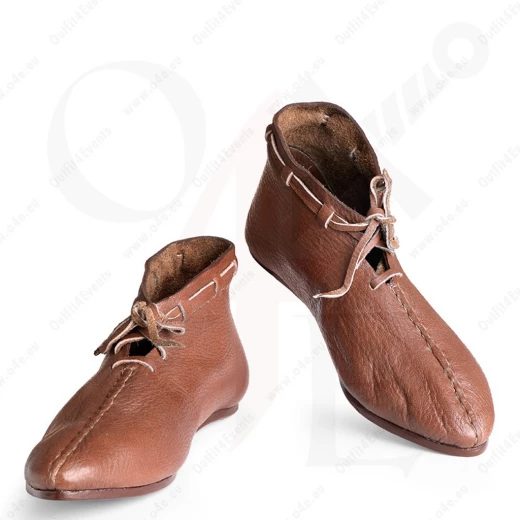 Diese Englisch - Skandinavische Schuhe sind von dem Klingenort am Oberleder genäht. Sie haben eine klassische Schnürung unterhalb des Knöchels. Dieses Modell zeigt ein Beispiel von den zwischen den Jahren 900 und 1200 in Europa und auf den Britischen Inseln getragenen Schuhen. Weitere Produktinformationen ...