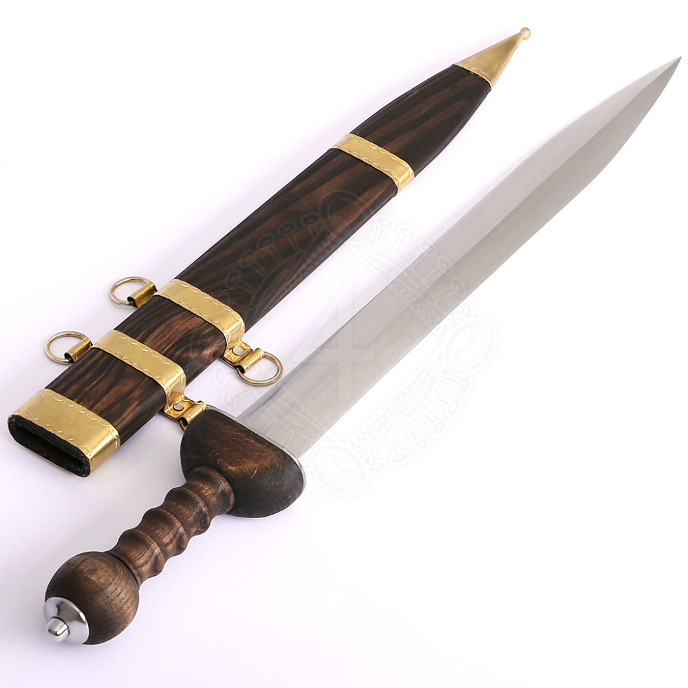2xDer Gladius ist ein römisches Kurzschwert. Er soll ab dem 3. Jahrhundert v. Chr. aus einem Schwerttyp der iberischen Keltiberer entwickelt worden sein und war in Variationen bis in das 3. Jahrhundert die Standardwaffe der Infanterie der römischen Armee. Spezifiziert zwischen Gladius und Spatha wurde im römischen Reich nicht, da Gladius einfach nur Schwert bedeutet und dieser Terminus nicht exklusiv für das Kurzschwert der Legionäre benutzt wurde. Weitere Produktinformationen ...