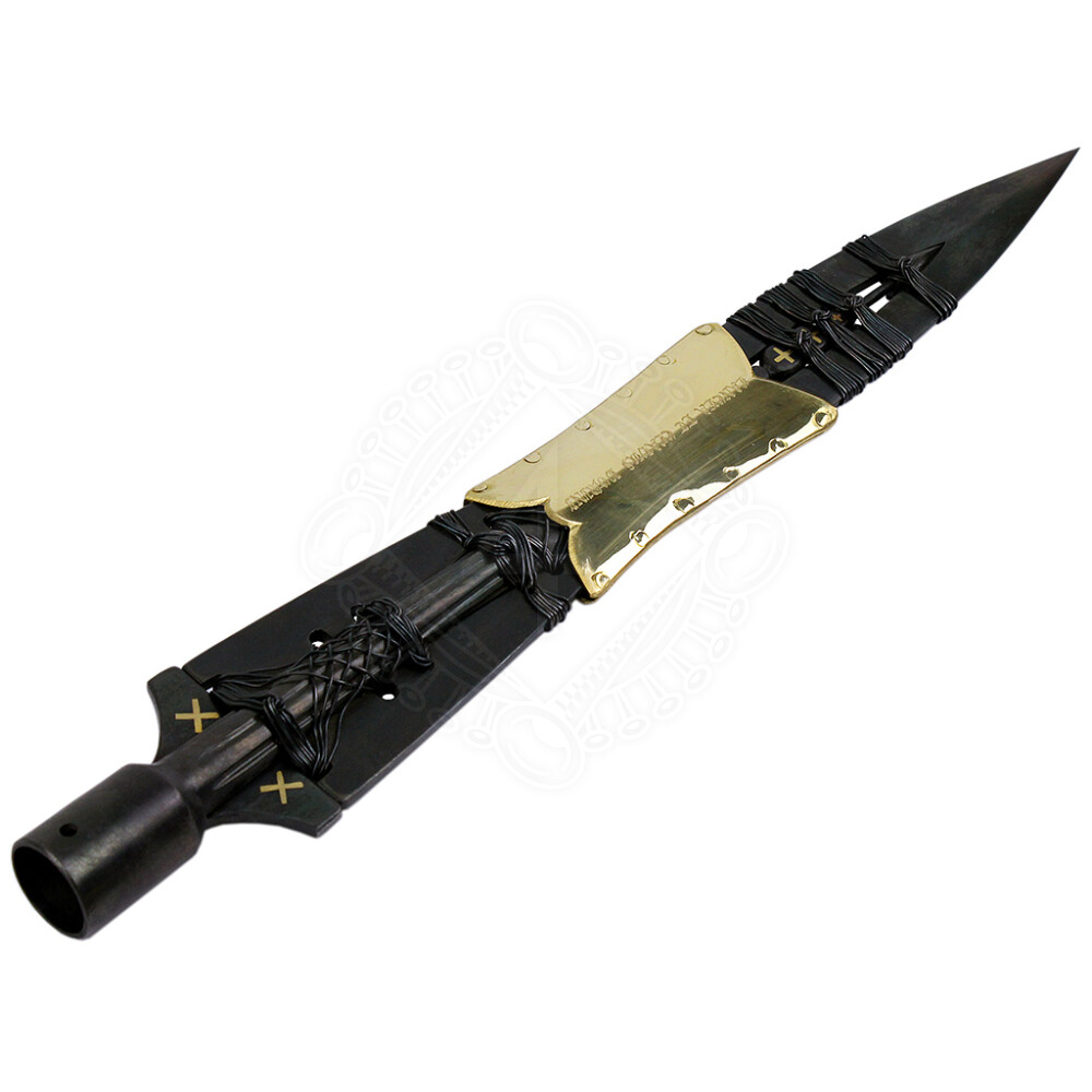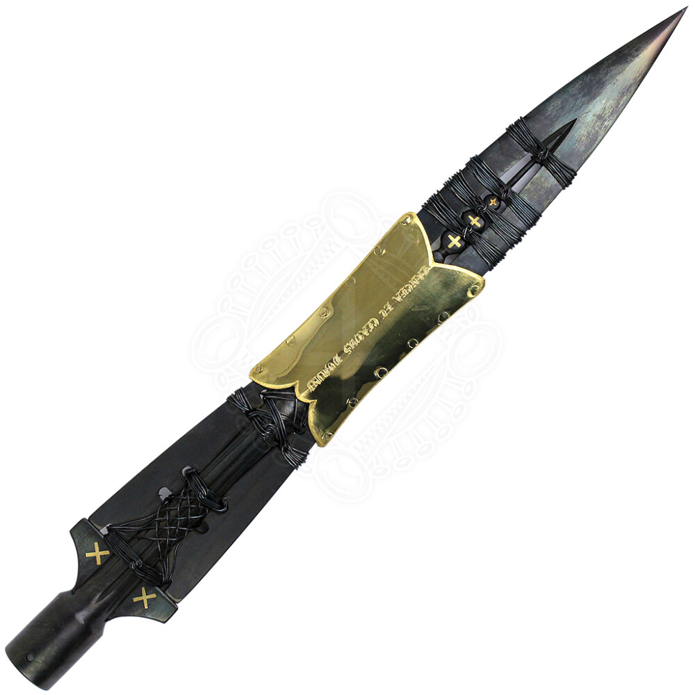 2xEs handelt sich um handgefertigte Replik Heilige Lanze aus geschwärztem Stahl und Messing. Auf dem Messingumschlag ist eingraviert: „LANCEA ET CLAVUS DOMINI“ (Lanze und Nagel). Weitere Produktinformationen ...