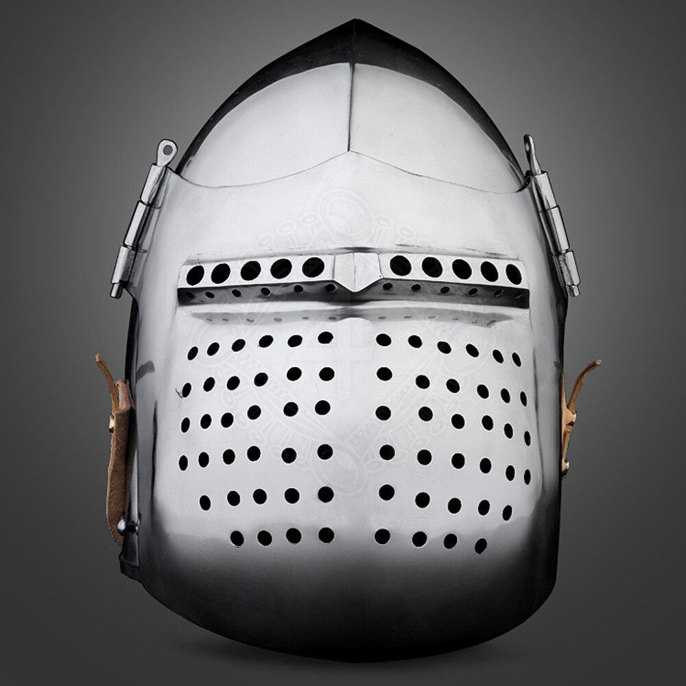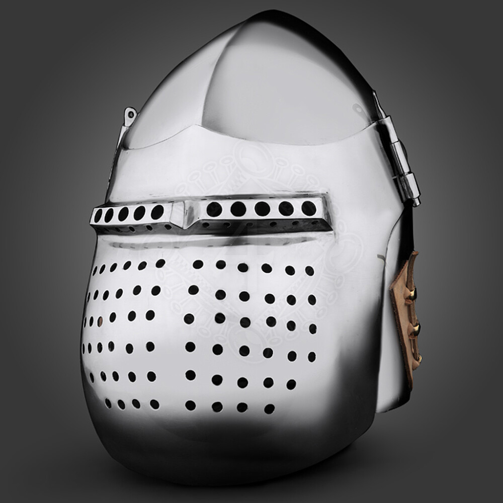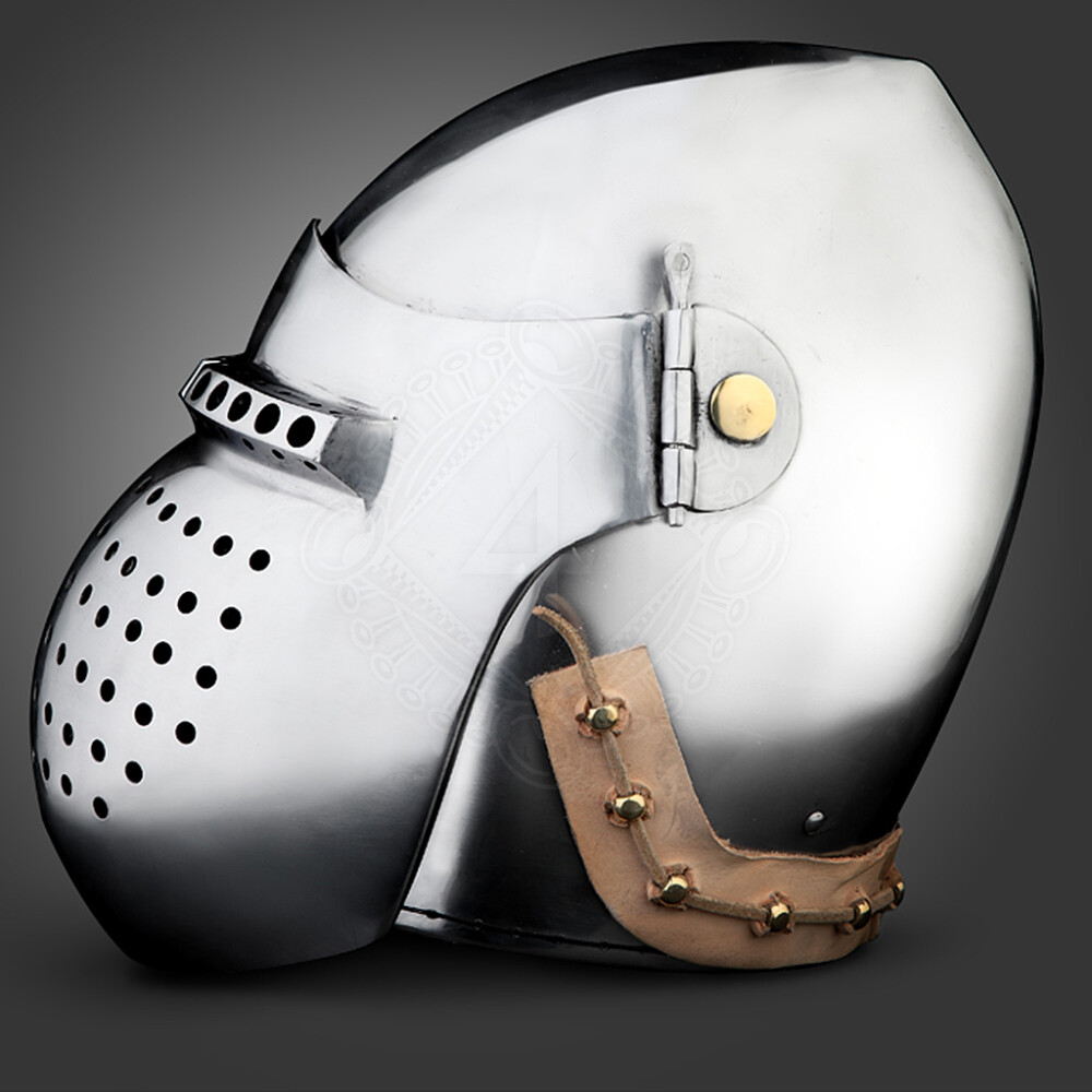 1xZeitgenössische Kampfkunst-Spezialisten modifizierten diesen Helm um den Anforderungen der modernen Kämpfer gerecht zu werden. Diese Beckenhaube mit bauchigem Visier bietet maximalen Schutz bei Erhaltung eines guten Ausblickes. Der Niet Verschluss-System ermöglicht eine schnelle und problemlose Auf- und runterklappen vom Visiers. Weitere Produktinformationen ...