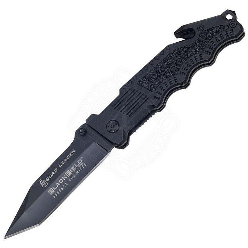 Ein handliches Rescue Taschenmesser Squard Leader, ausgestattet mit Glasbrecher und Gurtschneider. Die stabile Tantoklinge ist aus 440 rostfreiem Stahl, schwarz beschichtet, und wird mittels Liner-Lock arretiert. Weitere Produktinformationen ...