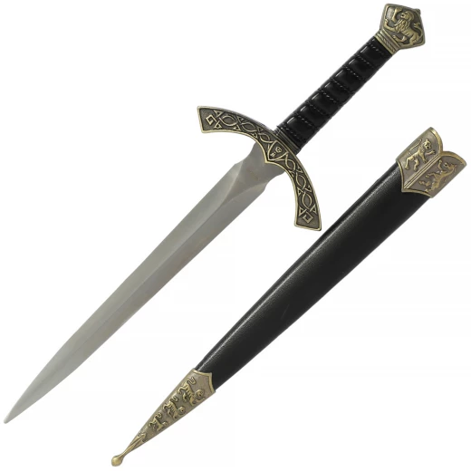 Dekorativer englischer Ritterdolch mit Klinge aus 420 rostfreiem Stahl. Reich verziert mit Löwenreliefen.