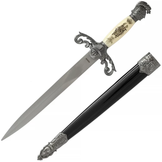 Dekorativer Ritterdolch mit Klinge aus 420 rostfreiem Stahl.