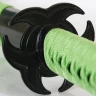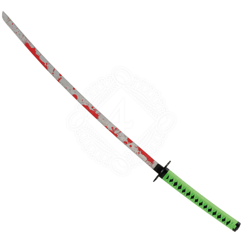 Die Klinge ist aus Kohlenstoffstahl, verziert mit grünen Zombieblut-Spitzern.Die Holzscheide ist mit einem kunstvoll gestalteten Zombie-Motiv versehen. Klingenlänge 67,5cm Gesamtlänge 103cm. Weitere Produktinformationen ...